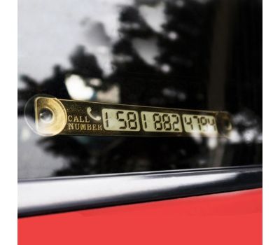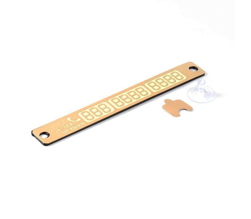 Табличка выполнена в элегантном золотистом цвете и имеет лаконичный современный дизайн, благодаря чему гармонично вписывается в интерьер салона любого автомобиля. Фосфорное покрытие обеспечивает свечение номера в тёмное время суток и на плохо освещённых парковках, делая информацию хорошо заметной даже ночью.