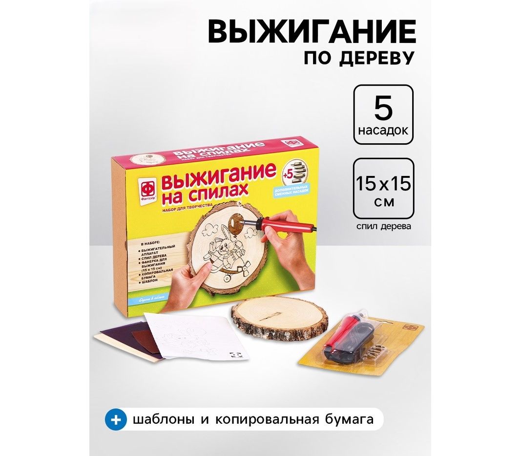 Натуральный деревянный спил и фанера 15×15 см позволяют сразу начинать работу: потренироваться на фанере, а затем создать свою итоговую работу на спиле. Такой сувенир станет не просто учебным проектом, а тёплым украшением для дома, оригинальным подарком для родителей или близких.