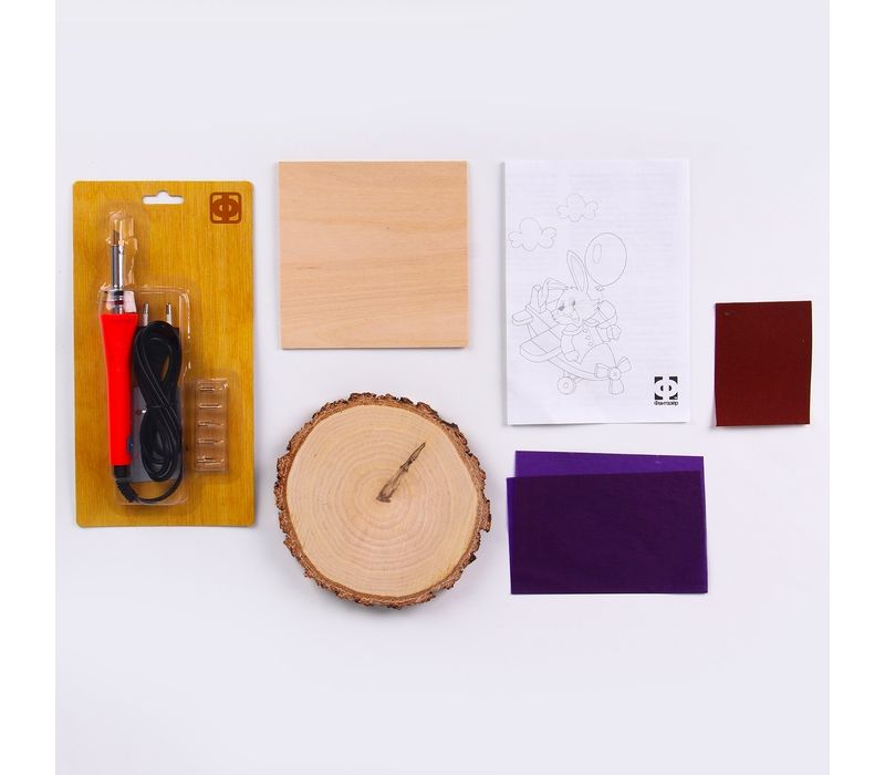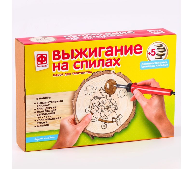 Набор для творчества «Выжигание по дереву на спилах “Дорога в облака”» — это идеальный старт для ребёнка, который мечтает попробовать себя в художественном выжигании. Он создан для мальчиков и девочек, которые любят рисовать, создавать своими руками и открывать новые виды творчества. В комплект входит современный выжигательный аппарат с 6 сменными насадками — благодаря этому юный мастер сможет создавать линии разной толщины, прорисовывать детали, выполнять тени и придавать рисунку завершённость.