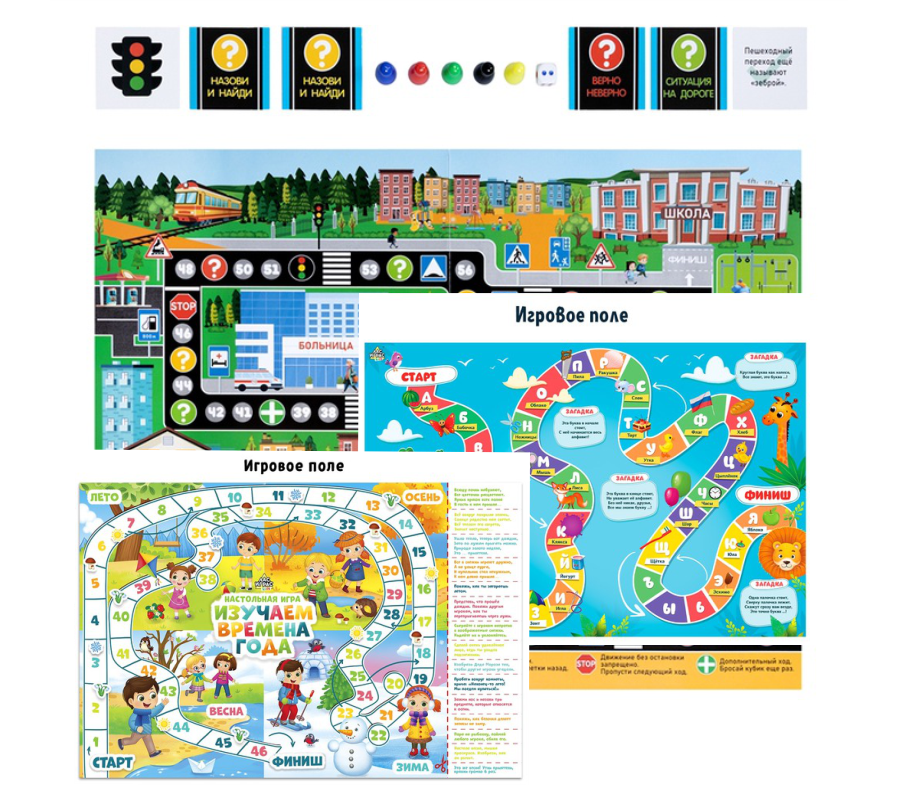 Формат игры-ходилки (бродилки) делает процесс обучения лёгким и интересным: ребёнок двигается по полю, выполняет задания, взаимодействует с родителями или друзьями и незаметно для себя учится.