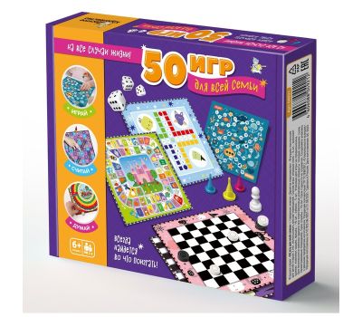 Настольная игра «50 игр для всей семьи», набор настольных игр, 6+