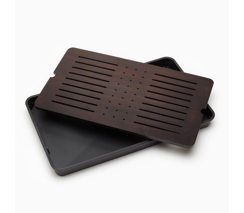 Чабань (чайная доска) используется для аккуратного заваривания чая методом проливов. Верхняя бамбуковая решётка пропускает воду, а съёмный поддон собирает влагу, помогая поддерживать чистоту и порядок во время церемонии. Высота бортика 4 см обеспечивает удобство и предотвращает перелив жидкости.