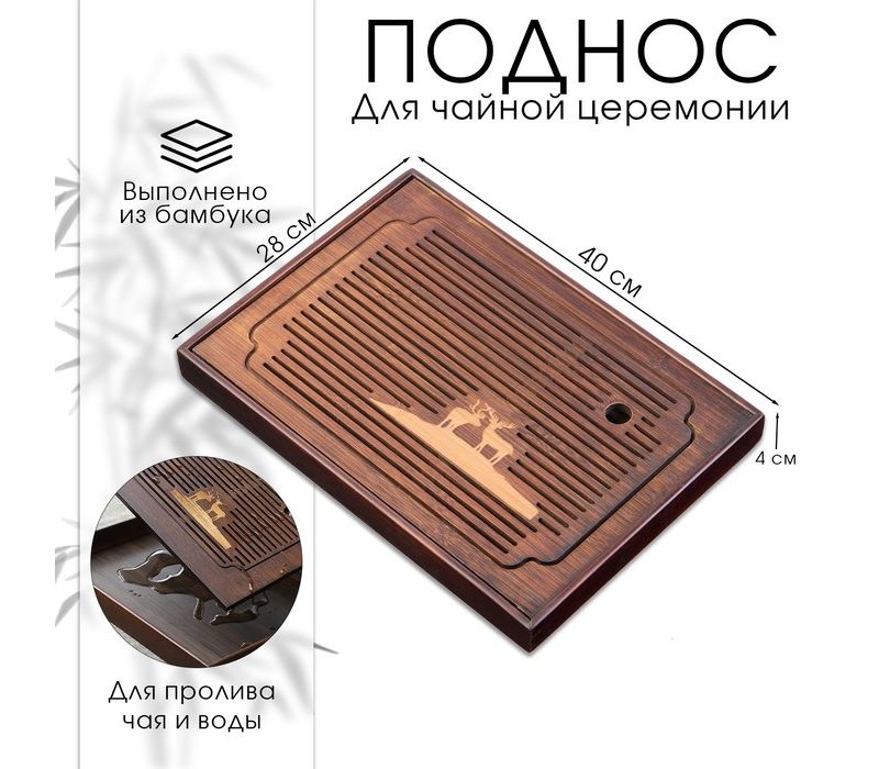 Поднос для чайной церемонии ДЖЕКИЧАЙ (чабань) размером 40×28×4 см — это практичная и эстетичная чайная доска для ежедневных и церемониальных чаепитий. Изготовленный из натурального бамбука, поднос сочетает в себе экологичность, прочность и приятную текстуру дерева, создавая атмосферу уюта и спокойствия во время чайного ритуала.