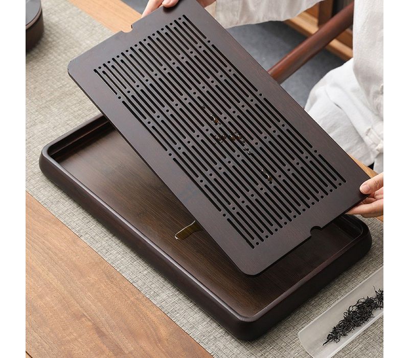 Прямоугольная форма и сдержанный коричневый цвет подноса делают его универсальным решением как для классической чайной церемонии, так и для повседневного чаепития дома или в чайной зоне офиса. Встроенная система слива воды предотвращает разлив жидкости на стол и поддерживает чистоту во время заваривания чая. Чабань позволяет спокойно проливать чай, не отвлекаясь на бытовые мелочи.