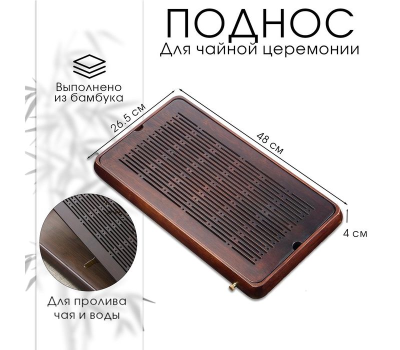 Уход за подносом прост, но требует внимательности. После использования рекомендуется своевременно сливать воду и протирать поверхность сухим полотенцем. Не стоит оставлять воду внутри надолго или хранить поднос рядом с источниками сильного тепла, чтобы сохранить натуральную структуру бамбука. Поднос ДЖЕКИЧАЙ станет надёжным спутником вашего чайного ритуала и подчеркнёт уважение к традициям.