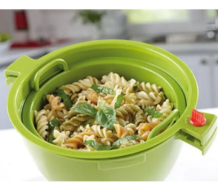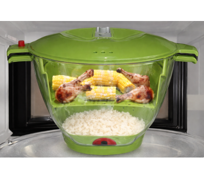 Волшебная кастрюля Magic Meal — это идеальный помощник на вашей кухне для приготовления пищи в микроволновой печи. Удобный и функциональный аксессуар, который облегчит процесс готовки и сэкономит ваше время. Кастрюля состоит из двух частей: одна емкость с отверстиями для легкого слива жидкости, вставляется в другую. Это позволяет легко отцеживать воду при варке риса, пасты или овощей, без лишних хлопот. Дополнительный ярус позволяет готовить два разных блюда одновременно, что делает Magic Meal отличным выбором для занятых домохозяек и любителей быстрого питания. Изготовленная из пластика и силикона, кастрюля также не требует использования масла, что делает пищу более здоровой. Теперь приготовление пищи станет быстрее, проще и приятнее!