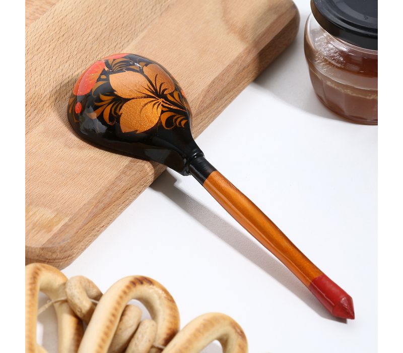 Благодаря длине 19 см изделие отлично подходит как для приготовления, так и для подачи пищи. Ложка станет не только кухонным аксессуаром, но и стильным декоративным элементом, который украсит интерьер в народном стиле.