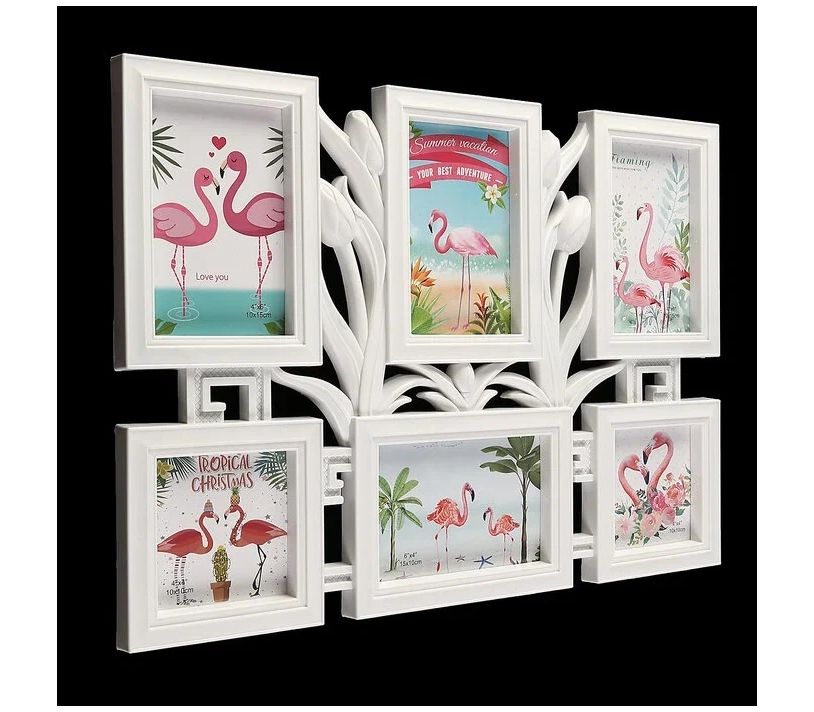 Фоторамка-коллаж «Фламинго» — это изысканный и стильный способ сохранить ваши самые яркие воспоминания. Эта оригинальная фоторамка обладает уникальным дизайном, который сочетает в себе 6 слотов для фотографий и элегантный фламинго, расположенный в центре. Она идеально подойдет для оформления стен в вашем доме и станет отличным подарком для близких. Крепление на стену делает ее удобной в использовании, а ее эргономичный дизайн легко вписывается в любой интерьер, будь то современный или классический. Размеры рамки позволяют разместить фотографии формата 10х15 см, что дает возможность демонстрировать важные моменты вашей жизни. Фламинго придает коллажу нотки романтики и легкости, создавая уютную атмосферу в вашем доме. Добавьте личный штрих в декор вашего пространства с этой замечательной фоторамкой!