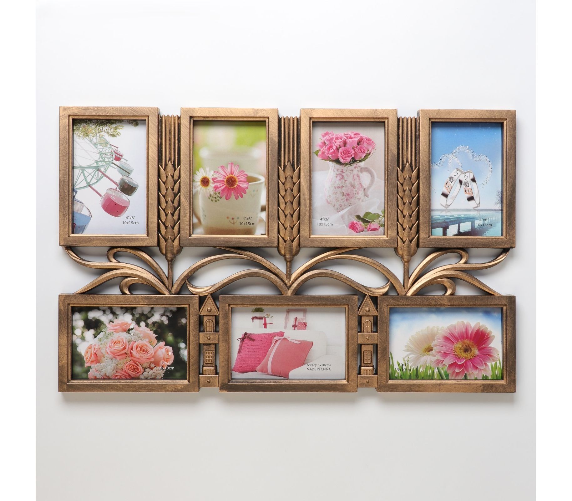 Фоторамка «Колоски» — элегантный пластиковый багет в золотистом цвете, рассчитана на 7 фотографий формата 10×15 см. Общие габариты рамки — 35 × 55,5 см, что позволяет разместить её как на стене, так и на крупной мебели. Декоративный растительный орнамент в виде колосков придаёт рамке уют и природную нотку — отлично подойдёт к интерьеру в классическом или природном стиле.