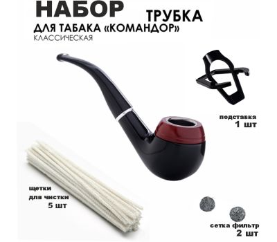 Основой комплекта является классическая курительная трубка «Командор» модели 163, длина 13,5 см. Эргономичная форма обеспечивает удобный захват, а сбалансированные пропорции обеспечивают комфортное курение. Диаметр чаши 2 см. Изменение для увеличения толщины стакана и раскрытия его вкуса и аромата.