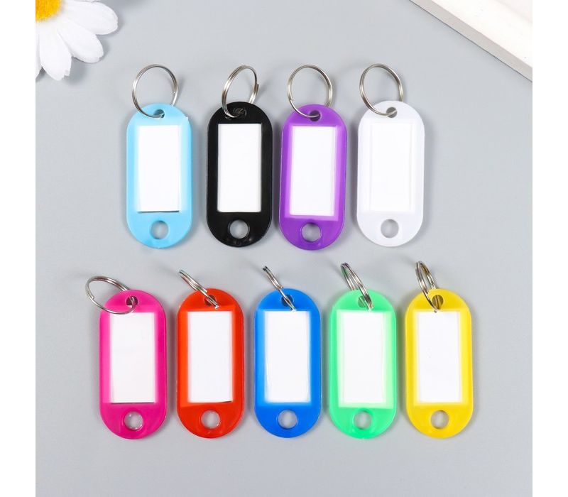 Брелоки выполнены из прочного пластика, стойкого к трению и легко выдерживающего ежедневное использование. Овальная форма обеспечивает достаточное пространство для надписей, имен или кодов на внутренней поверхности. Благодаря миксу ярких цветов вы легко сможете визуально разграничивать разные группы ключей — домашние, офисные, запасные и т.д.