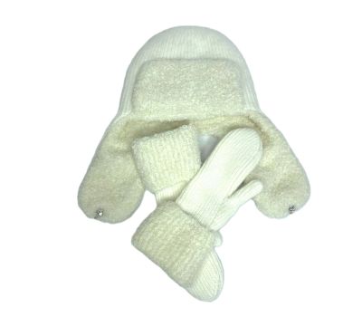 - Особенности: ушки на шапке, мягкий подклад на варежках