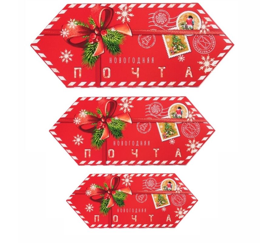 Набор подарочных коробок-конфет «Новогодняя почта» 3 в 1 — стильная складная упаковка для новогодних подарков