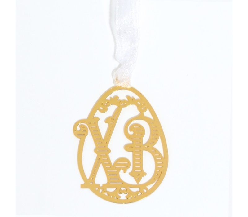 Изделие выполнено из качественного металла с золотистым покрытием, что придаёт украшению изысканный и праздничный вид. Подвеска из текстиля гармонично дополняет изделие, делая его лёгким и элегантным. Символ «ХВ» — традиционное пасхальное приветствие «Христос Воскрес», которое отражает радость и духовный смысл праздника.
