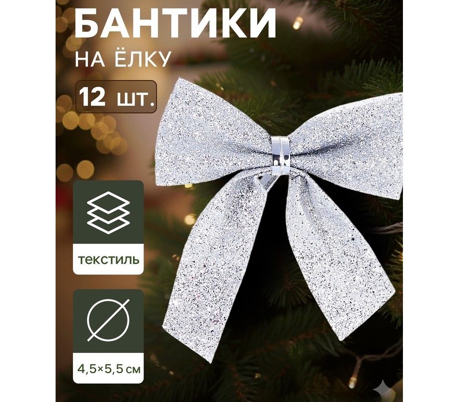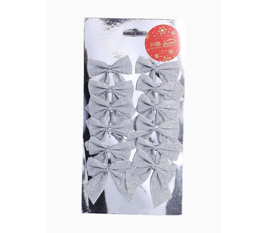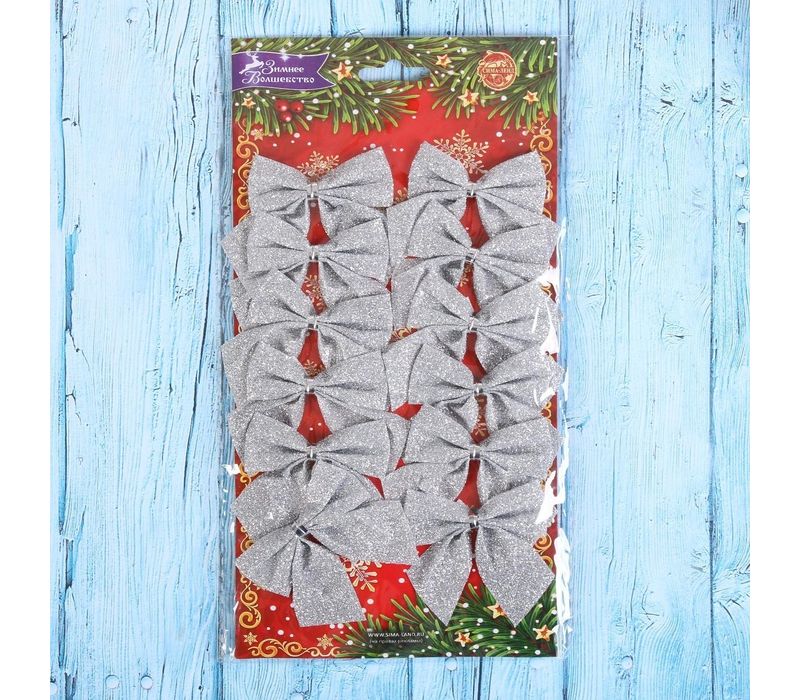 Набор ёлочных украшений «Зимнее волшебство. Бантик — блеск» — это изящный акцент для вашей новогодней ёлки. Комплект из 12 миниатюрных бантов размером 4,5×5,5 см выполнен в благородном серебристом оттенке с лёгким блеском. Такие украшения идеально дополнят декор в скандинавском, классическом или современном стиле, создавая ощущение чистоты, легкости и зимней свежести.