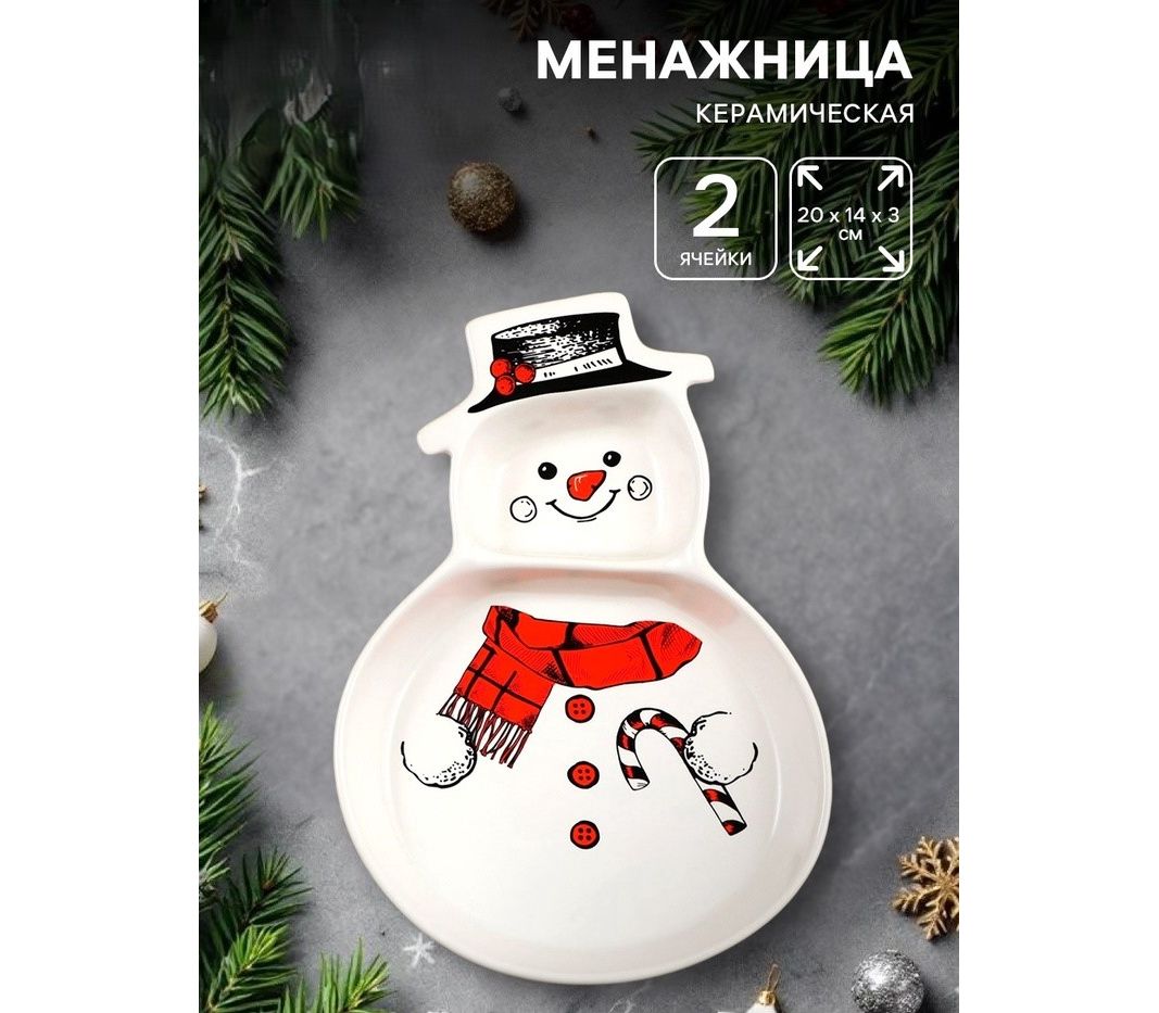 Создайте атмосферу настоящего волшебства на праздничном столе с новогодней менажницей «Снеговик!». Компактная и удобная, она станет стильным акцентом вашей сервировки и подчеркнёт новогоднее настроение дома.
