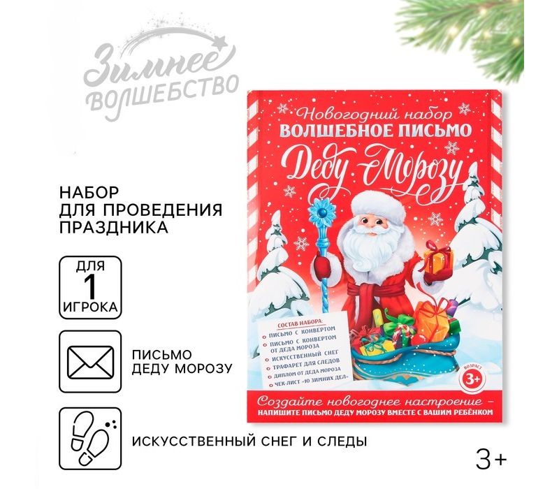 Вместе с ребёнком вы сможете написать письмо Деду Морозу, отправить его в «сказочную почту» и получить ответ — всё как по-настоящему. Подробная инструкция поможет родителям легко организовать праздничный сценарий без лишних хлопот. Элементы набора создают эффект присутствия Деда Мороза: следы на полу, «снег», письмо и диплом делают праздник живым и запоминающимся.