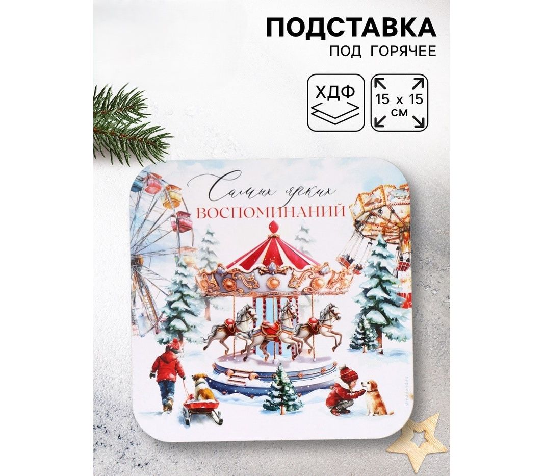 Новогодняя подставка под горячее «Ярких воспоминаний» — это небольшой, но важный элемент праздничного сервирования. Она создана для тех, кто любит сочетание практичности и красивого декора. Формат 15×15 см универсален: подставка подходит под чайник, турку, сковородку, кастрюлю, форму для запекания или кружку с горячим напитком.