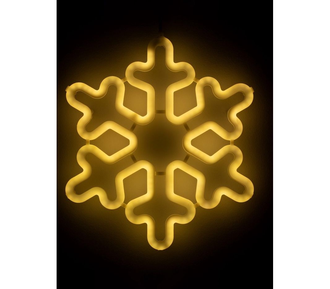 Фигура выполнена из прочного пластика, устойчива к перепадам температур и подходит для уличного и внутреннего использования. Питание от сети 220 В обеспечивает стабильную работу и долговечность светодиодов. Диаметр снежинки — 30 см, благодаря чему она подходит и для настенного декора, и для подвешивания в композициях.