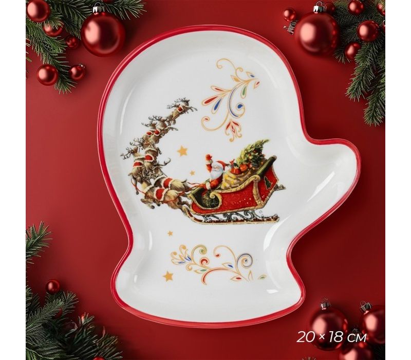 Сервировочная тарелка «Новогодняя рукавичка. Сани Деда Мороза» — стильное блюдо для праздничной подачи