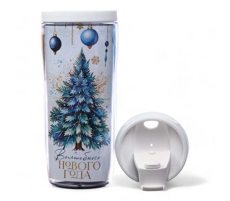Прозрачный корпус позволяет видеть декоративную вставку с ярким новогодним принтом, который создаёт атмосферу волшебства. Благодаря такой конструкции кружка выглядит эффектно и работает как мини-декор, который поднимает настроение даже в будни. Вставка не выцветает, а принт остаётся насыщенным весь сезон.