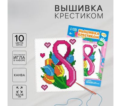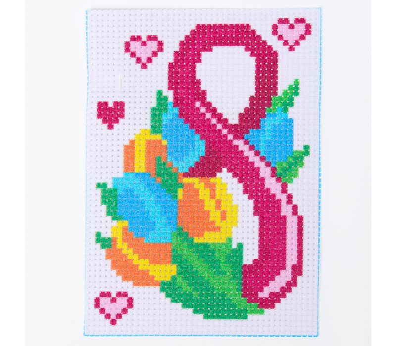 Набор для творчества «Вышивка крестиком „С праздником 8 Марта!“» — это тёплый и трогательный способ познакомить ребёнка с новым хобби и одновременно создать праздничный подарок своими руками. Небольшая вышивка с простым узором и цветной схемой идеально подходит для начинающих, позволяя малышу легко освоить основы вышивания крестиком.