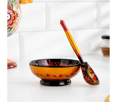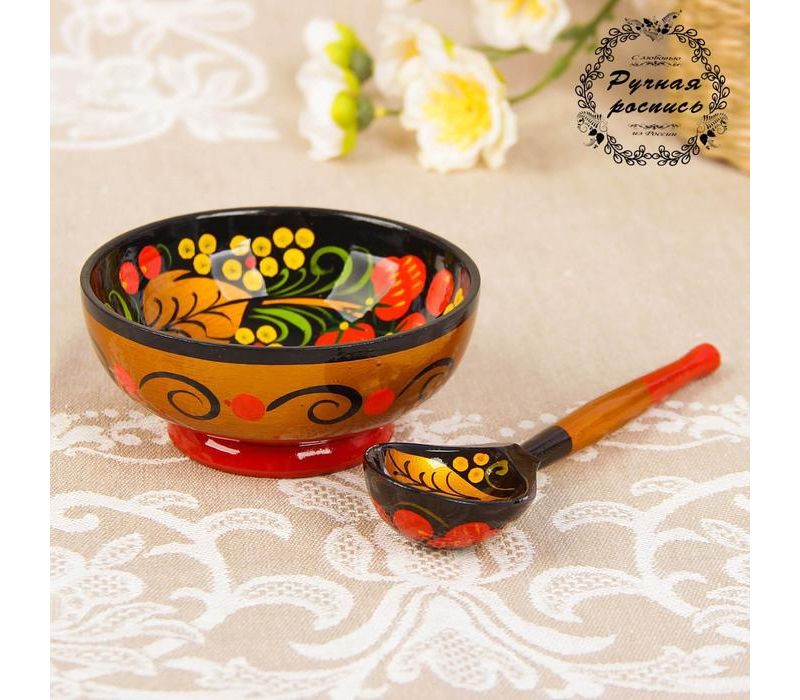 Набор посуды «Розетка с ложкой» — это изящный и практичный аксессуар для сервировки стола, выполненный из натурального дерева и украшенный традиционной хохломской росписью. Такой комплект объединяет в себе красоту народного искусства и удобство использования, делая каждое чаепитие или праздничную трапезу более атмосферными.