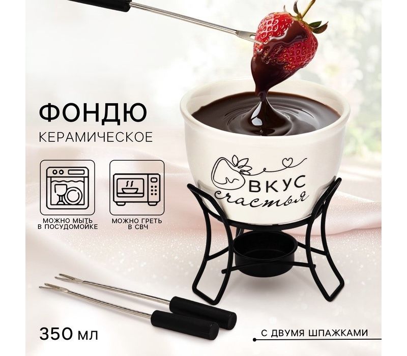 Лаконичный и одновременно тёплый дизайн с надписью «Вкус счастья» делает фондюшницу не только функциональной, но и эстетичной. Она гармонично впишется в интерьер кухни, станет украшением сервированного стола и отличным подарком для ценителей уюта и вкусных моментов.