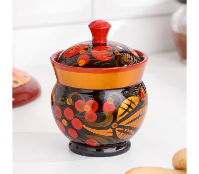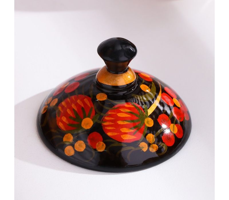 Солонка с крышкой «Ягодка» в стиле хохломской росписи — это изящный и практичный аксессуар для кухни, который сочетает традиции народного искусства и удобство повседневного использования. Изделие выполнено из натурального дерева и украшено яркой художественной росписью в классических оттенках хохломы: красном, чёрном и золотом.