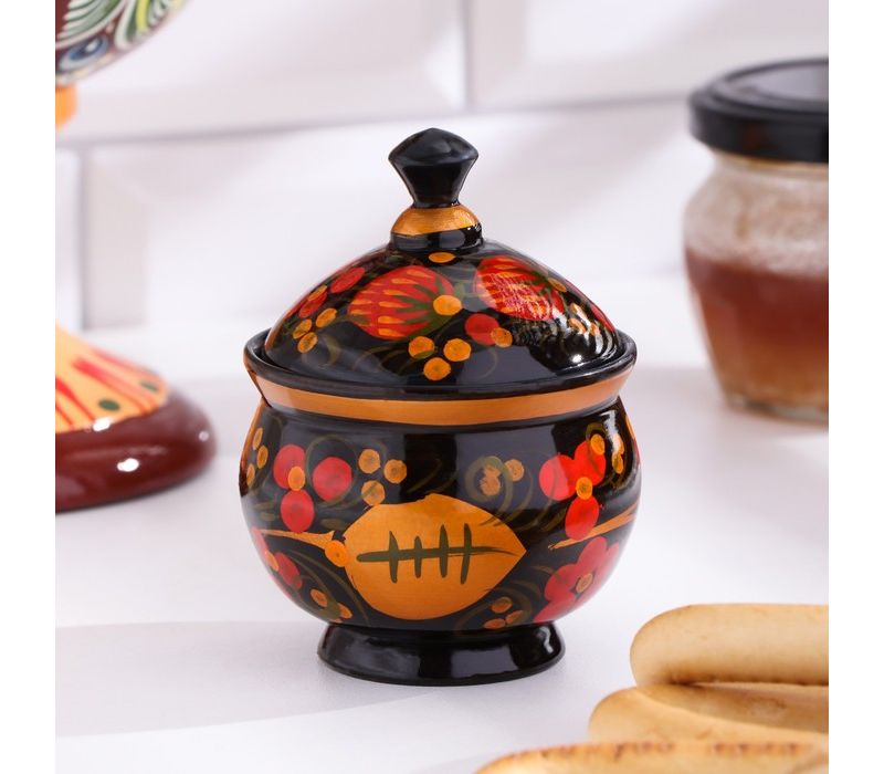 Хохломская роспись считается одним из самых известных русских народных промыслов. Её узнаваемые узоры вдохновлены природой — на изделиях можно увидеть ягоды рябины и земляники, листья, цветы и декоративные орнаменты. Каждый предмет расписывается вручную без предварительной разметки, поэтому рисунок всегда уникален и неповторим.